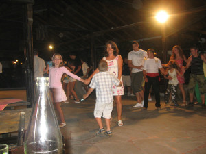 Mosogatás után felöltözünk szép ruhába és megyünk is a buliba. A színpad környékén rengeteg a vendég, gyerek, felnőtt egyaránt. A szervezők mára mini disco-t és közös tánctanulást hirdettek. A hangulat hamarosan a tetőfokára hág és mindenki együtt énekel és táncol. Már rég elfelejtettük mi is és a többi szülő is, hogy ez eredetileg gyerekprogram volt. 🙂